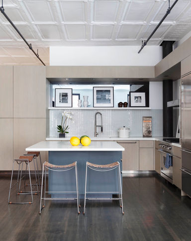 This prime Soho loft was gut renovated using a modern language and playful, unexpected details, while retaining much of the historical character of the space. With only one exposure, the design maximizes natural light and maintains a sense of openness. The finished space is a classic downtown loft, and the perfect setting for the client’s eclectic art collection, as well as collaborations with a muralist and local artisans on some of the key pieces.